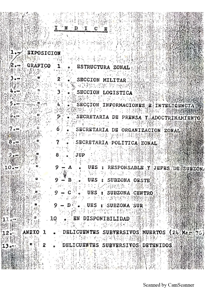 Allí separa la Sección Militar / Sección Logística / Sección Informaciones; de las Secciones Prensa / Política (incluye sindical) / UES (Unión de Estudiantes Secundario; célula estudiantil). Si el represor consideraba a todas sus víctimas iguales, si las consideraba como todas parte del brazo militar o peligrosos combatientes, entonces no tendría sentido estas separaciones: los habría agrupado a todos dentro de la Sección Militar / Logística / Inteligencia